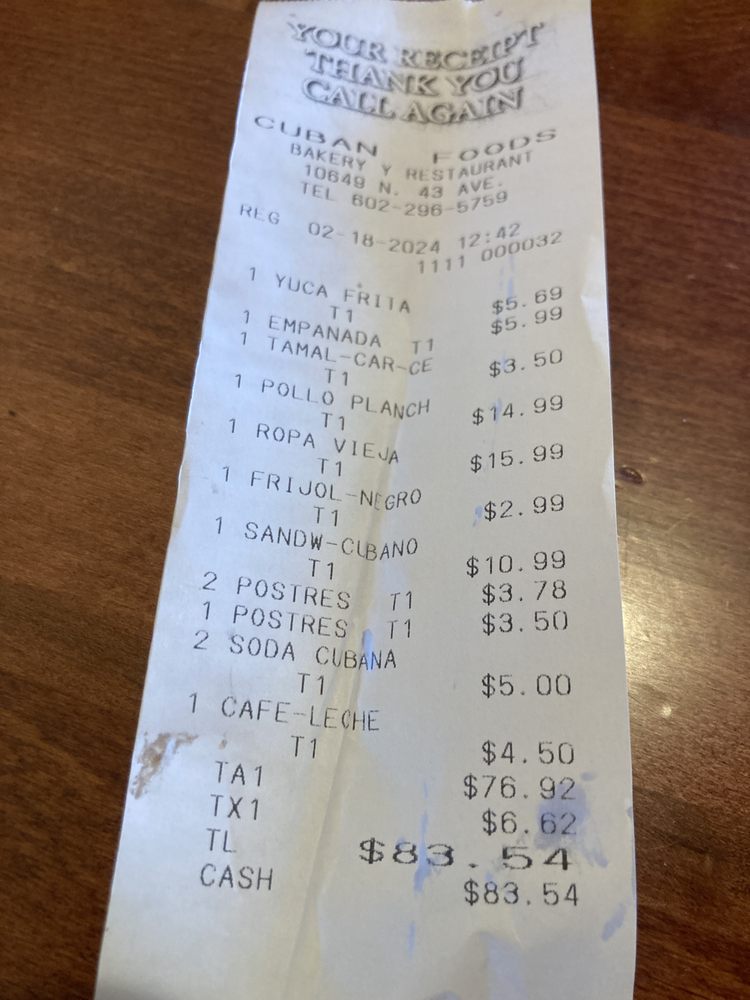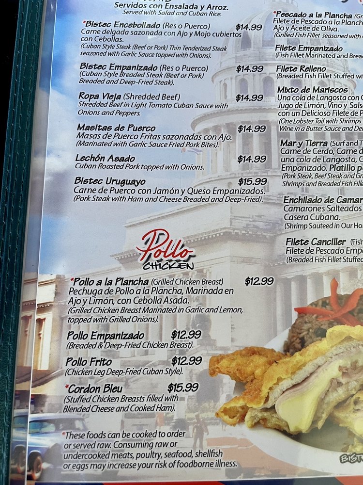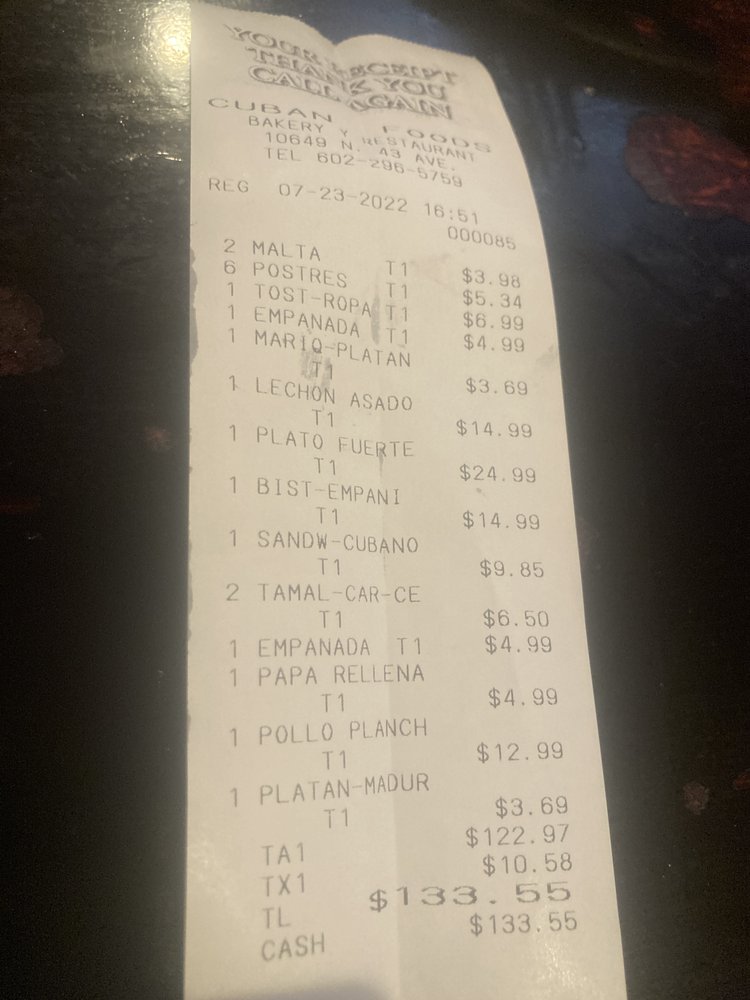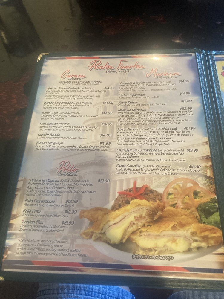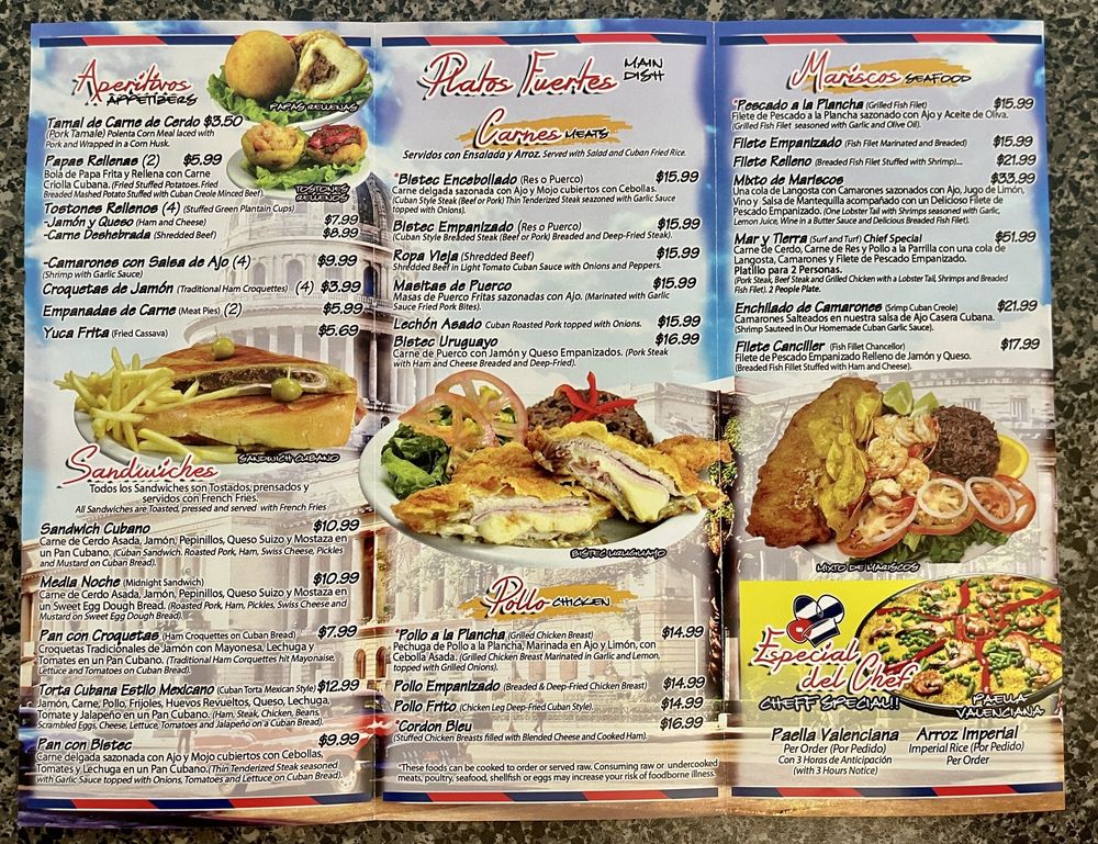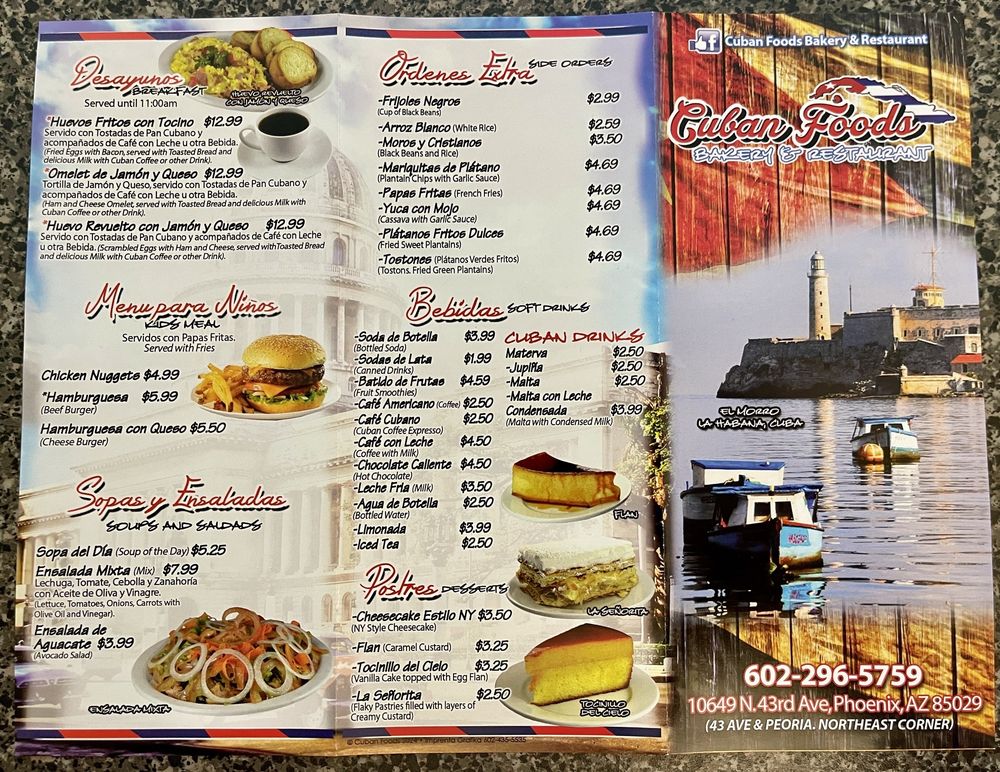 Introducing the menu at Cuban Foods Bakery - a gem in Phoenix, AZ offering authentic Cuban cuisine. This bakery and restaurant not only provides delicious dishes but also offers a range of amenities like delivery, takeout, and outdoor seating. Customers rave about the exceptional service, affordable pricing, and generous portions. Standout dishes include the Cuban sandwich, ham croquettes, and the Filete Relleno - shrimp stuffed fish fried to perfection. The menu features traditional Cuban fare like tostones with shredded beef, fried yucca, and empanadas. Dessert options abound with flan and various cakes to satisfy your sweet tooth. The relaxed atmosphere, friendly staff, and impeccable cleanliness make this a must-visit spot for those craving authentic Cuban flavors in a cozy setting. Don't miss out on trying the Iron Beer and saving room for dessert - a truly delightful dining experience awaits at Cuban Foods Bakery.